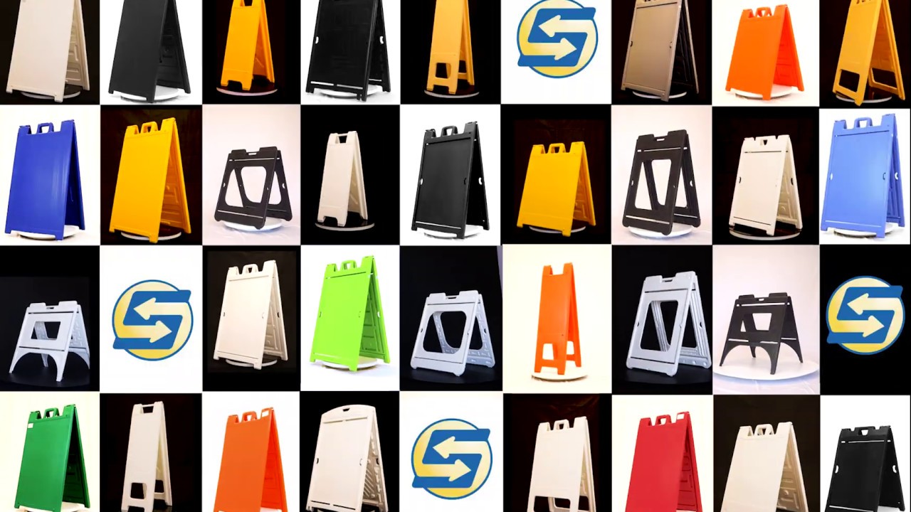 The Original Signicade and Signicade Deluxe portable sandwich board style A-frame sign stand lines are among the most used sign frames of any industry and boast being extremely durable, portable, and versatile to suit your needs. Signs Direct presents, the portable sandwich board style A-frame Plasticade lineup coroplast holding plastic sign stand.